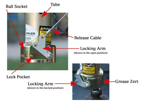 When you lower the coupler onto the itch ball it will automatically lubricate the ball. Be sure to use a quality multi-purpose grease to prevent premature wear of the coupler ball socket and hitch ball.